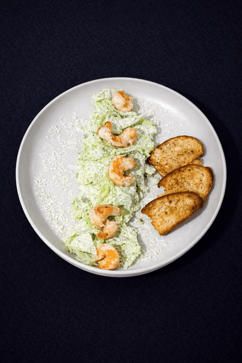 Салат Цезарь с креветками гриль
